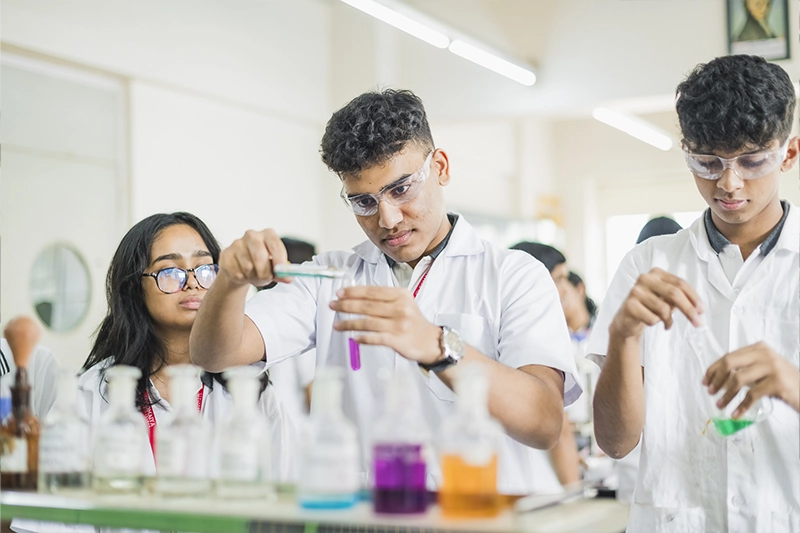 Students opting for the Science stream study English, Physics, and Chemistry as core compulsory subjects. In addition, they may choose from a range of elective subjects including Mathematics, Biology, Computer Science, Economics, Entrepreneurship, Psychology, Applied Mathematics, Music, Painting, Physical Education, Artificial Intelligence etc. among others, to tailor their academic pathway.